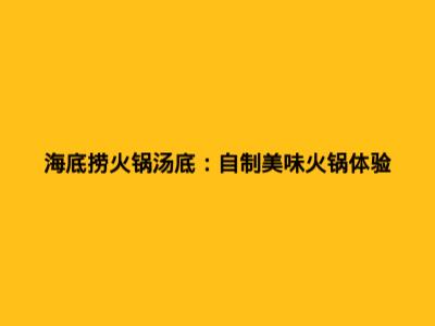 海底捞火锅汤底:自制美味火锅体验