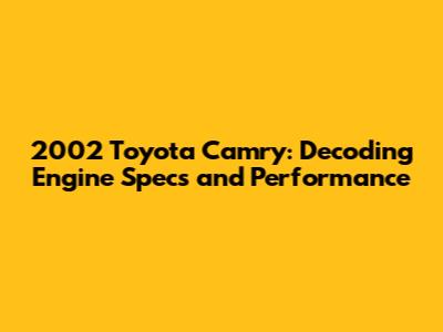 2002 Toyota Camry: Engine Specs And Performance