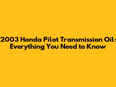 2003 Honda Pilot Transmission Oil: Everything You Need to Know