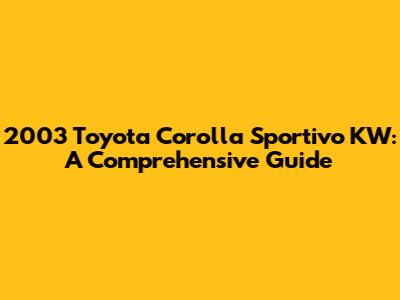 Hey guys! Let's dive deep into the world of the 2003 Toyota Corolla Sportivo KW. This guide is your one-stop shop for everything related to this awesome car, especially focusing on the KW aspect. We'll cover what makes this car special, why people love it, and what you should know if you're thinking about getting one or already own one. So, buckle up, because we're about to take a fun ride through the details!