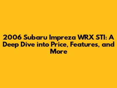 Hey gearheads! Ever dreamt of owning a rally-bred beast that can tackle both the track and your daily commute? Well, the 2006 Subaru Impreza WRX STI might just be the car of your dreams. This iconic performance car has a legendary status, and for good reason! This comprehensive guide will cover everything you need to know about the 2006 Subaru Impreza WRX STI harga (price), its features, what to look for when buying, and why it remains a sought-after car even today. Buckle up, and let's dive in!
