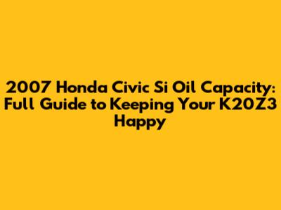 Hey there, fellow Honda enthusiasts and proud owners of the legendary 2007 Honda Civic Si! If you're reading this, chances are you're either a meticulous owner, a new Si driver, or just someone who truly cares about the longevity and performance of your incredible machine. And let me tell you, when it comes to maintaining a high-revving, performance-oriented engine like the K20Z3 in your Si, understanding its oil capacity and overall lubrication needs is paramount. It's not just about pouring some oil in; it's about giving your engine the lifeblood it deserves to sing all the way to that glorious 8,000 RPM redline. We're going to dive deep into everything you need to know about keeping your 2007 Honda Civic Si running like a dream, from the exact oil capacity to the best types of oil, and even some pro tips for oil changes. Getting this right means your Si will continue to deliver that thrilling VTEC engagement and precise handling for years to come, making every drive an absolute blast. So, buckle up, guys, because we're about to demystify the oiling system of your beloved Si, ensuring you're armed with all the knowledge to perform top-notch maintenance and avoid costly mistakes down the road. It's a small but mighty step in preserving the heart of your sporty coupe or sedan, and honestly, it’s one of the easiest and most impactful things you can do to ensure peak performance and reliability. Let's make sure your K20Z3 is bathed in the good stuff and at the perfect level, always ready for action!