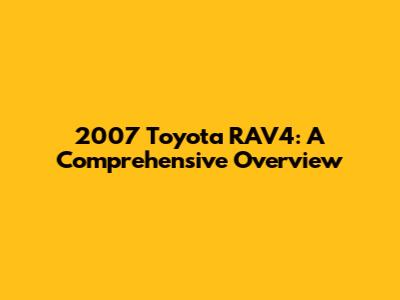 2007 Toyota RAV4: A Comprehensive Overview