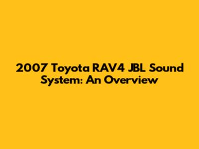 2007 Toyota RAV4 JBL Sound System: An Overview