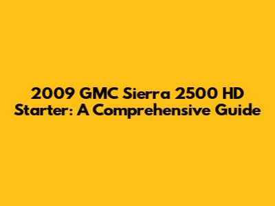2009 GMC Sierra 2500 HD Starter: Troubleshooting & Replacement