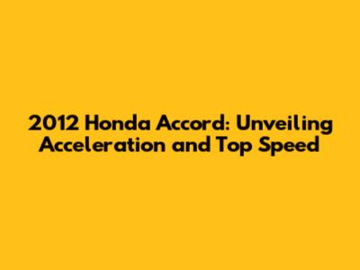 2012 Honda Accord: Acceleration & Speed Insights