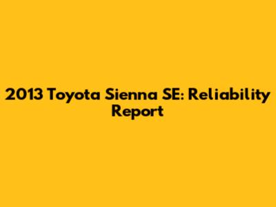 2013 Toyota Sienna SE: Reliability Report