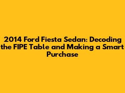 Hey car enthusiasts! Are you guys considering snagging a 2014 Ford Fiesta Sedan? It's a fantastic choice, known for its fuel efficiency, stylish design, and overall reliability. But before you dive in, let's talk about something super important: the FIPE table (Tabela FIPE in Portuguese). This is your go-to resource for understanding the fair market value of your potential ride. In this article, we'll break down everything you need to know about the 2014 Fiesta Sedan, the FIPE table, and how to use this information to make a smart, informed purchase. Get ready to become a Fiesta expert!
