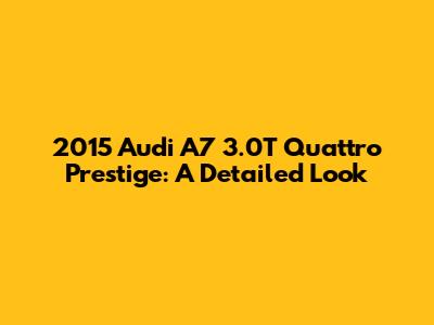 Let's dive deep into the 2015 Audi A7 3.0T Quattro Prestige, guys! This car isn't just a way to get from point A to point B; it's a statement. It's a blend of luxury, performance, and technology that makes it a standout in the crowded premium sedan market. We're going to break down what makes this particular model so special, from its sleek design to its impressive performance and all the bells and whistles that come with the Prestige trim. If you're considering buying a used luxury car, or you're just curious about what the 2015 A7 has to offer, you've come to the right place. We'll cover everything you need to know to make an informed decision. Think of this as your ultimate guide (but not really, because the prompt said not to use that, haha!) to understanding the魅力of the 2015 Audi A7 3.0T Quattro Prestige.