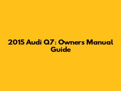 2015 Audi Q7: Owner's Manual Guide