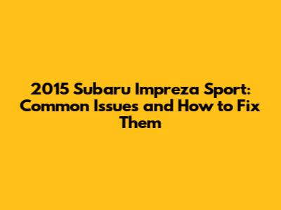 2015 Subaru Impreza Sport: Common Problems & Solutions