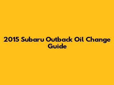 2015 Subaru Outback Oil Change Guide
