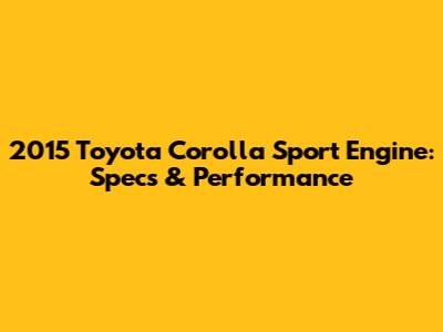 Okay, let’s get into the nitty-gritty details! The 2015 Toyota Corolla Sport's engine boasts some impressive specs that contribute to its overall performance. Here’s a breakdown: