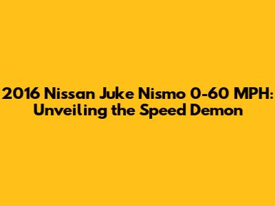 Hey guys, are you curious about the 2016 Nissan Juke Nismo 0-60 mph time? You're in luck! Let's dive deep and explore the exhilarating world of the 2016 Nissan Juke Nismo, a compact SUV that packs a serious punch. We're going to break down its performance, discuss what makes it special, and see how it stacks up against the competition. Get ready to be impressed! This spunky little crossover isn't just about looks; it's a performance-oriented machine that delivers a thrilling driving experience. From its turbocharged engine to its sporty suspension, the Juke Nismo is designed to turn heads and put a smile on your face. So, buckle up, and let's get into the nitty-gritty of what makes this car so exciting. We'll cover everything from the engine specs to the driving dynamics, giving you a comprehensive look at this unique vehicle. By the end, you'll have a clear understanding of what the 2016 Nissan Juke Nismo has to offer and why it's a favorite among car enthusiasts. So, are you ready to explore the 0-60 mph acceleration and performance capabilities? Let's get started!