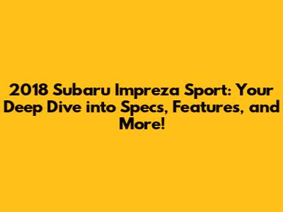 Hey there, car enthusiasts! Let's dive deep into the 2018 Subaru Impreza Sport, a car that's been making waves for its blend of practicality, style, and Subaru's legendary all-wheel-drive (AWD) capabilities. If you're on the hunt for a compact car that can handle various driving conditions with ease, the Impreza Sport is definitely worth a closer look. We'll break down everything from the specs and features to the overall driving experience so you can decide if this car is the right fit for you. Buckle up, and let's get started!
