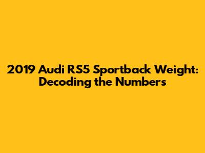 Hey car enthusiasts! Ever wondered about the 2019 Audi RS5 Sportback weight? Well, you're in the right place! We're diving deep into the specifics, breaking down the figures, and giving you the lowdown on what makes this sporty ride tick. Understanding the weight of a car isn't just a numbers game; it's crucial for performance, handling, and even fuel efficiency. So, grab your gear and let's get into the nitty-gritty of the 2019 Audi RS5 Sportback's weight, shall we?