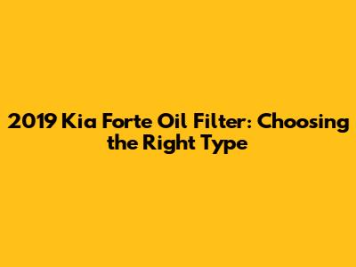 2019 Kia Forte Oil Filter: Choosing The Right Type