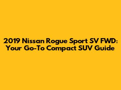 Hey car enthusiasts! Let's dive deep into the 2019 Nissan Rogue Sport SV FWD, a compact SUV that's been making waves in the automotive world. We'll explore everything from its performance and features to its overall value proposition. If you're in the market for a versatile and fuel-efficient vehicle, stick around. This is your ultimate guide to understanding if the Rogue Sport SV FWD is the right fit for you. We'll be covering its key aspects, from engine specifications and interior comforts to safety features and technology. So, buckle up, and let's get started!