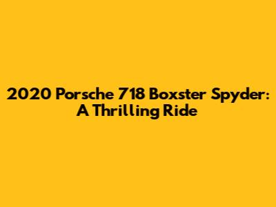 In conclusion, the 2020 Porsche 718 Boxster Spyder is a truly exceptional sports car that offers a thrilling and engaging driving experience. From its stunning design to its exhilarating performance, the Spyder is a testament to Porsche's engineering prowess and commitment to excellence. If you're looking for a sports car that delivers pure driving bliss, the 718 Boxster Spyder is definitely worth considering. It's a car that will not only excite your senses but also connect you to the road in a way that few other cars can.