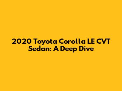 Hey guys! Let's take a closer look at the 2020 Toyota Corolla LE CVT Sedan. This car isn't just about getting from A to B; it's about doing it with style, efficiency, and a whole lot of reliability. So, buckle up as we explore every nook and cranny of this popular sedan. Let's dive in and see what makes the 2020 Toyota Corolla LE CVT Sedan a standout choice for many drivers.