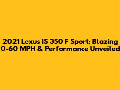 • The 2021 Lexus IS 350 F Sport delivers brisk acceleration, with a 0-60 mph time of around 5.6 to 5.7 seconds.