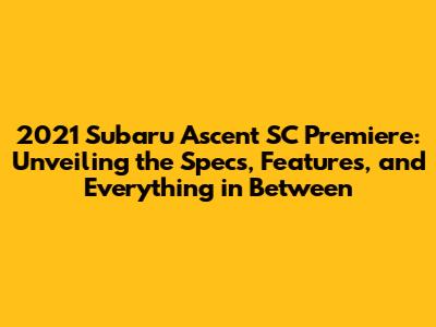 Unpacking the 2021 Subaru Ascent SC Premiere: A Detailed Overview