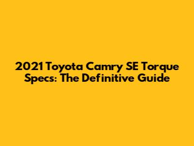 2021 Toyota Camry SE Torque Specs: The Definitive Guide
