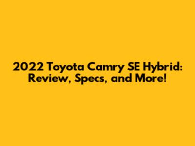 2022 Toyota Camry SE Hybrid: Review, Specs, And More!
