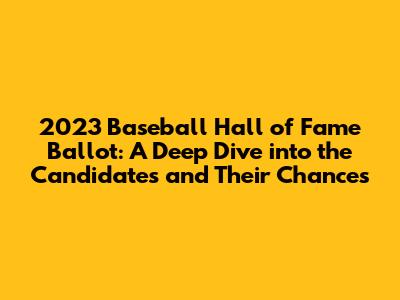 Hey baseball fanatics! Let's dive into the 2023 Baseball Hall of Fame ballot, shall we? This year's ballot is packed with talent, debate, and the age-old question: who's worthy of a plaque in Cooperstown? We're going to break down the key candidates, discuss their strengths and weaknesses, and make some predictions about who will be immortalized among baseball's greats. Buckle up, because this is going to be a fun ride. The Baseball Hall of Fame is the ultimate recognition for a player's career, and being elected is a massive honor, signifying a player's impact on the game. Every year, the Baseball Writers' Association of America (BBWAA) and the various Era Committees cast their votes, and the results are always eagerly awaited by fans and players alike. There is always a lot of excitement and anticipation surrounding the announcement of the Hall of Fame class. The process itself is rigorous, with specific criteria that each candidate must meet to be eligible for consideration. The ballot includes a mix of returning candidates and first-time eligibles, each with their own unique story and case to make. Some have strong statistical arguments, others have undeniable leadership qualities, and some have faced controversies that could potentially influence the voting. The ballot also includes players from different eras, with different playing styles and different levels of fame. This diversity adds to the complexity of the voting process. Let's get into the nitty-gritty of who's on the ballot and what their chances look like. The discussions and debates surrounding the Hall of Fame candidates are an important part of baseball culture, and they help to preserve the history of the sport. Every year, new arguments and perspectives emerge, highlighting the ever-evolving nature of the game and the different ways we can appreciate its history.