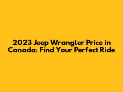 2023 Jeep Wrangler Price In Canada: Find Your Perfect Ride