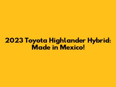 Hey guys! Let's dive into the awesome 2023 Toyota Highlander Hybrid, and guess what? It's being made in Mexico! This is super exciting, and we're going to break down everything you need to know about this fantastic SUV. From its incredible fuel efficiency to its spacious interior and now, its Mexican roots, the Highlander Hybrid is making waves. Buckle up, because we're about to explore all the details!