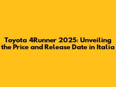 2025 Toyota 4Runner: Price & Release Date In Italia