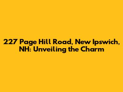 Hey everyone! Let's dive into the details of 227 Page Hill Road, New Ipswich, NH. We're talking about a place that's more than just an address; it's a potential home, a piece of land, or maybe even an investment opportunity. This area is nestled in the charming town of New Ipswich, a spot in New Hampshire that's got a lot to offer. We're going to explore what makes this specific location interesting, covering everything from the property itself to the surrounding community. So, grab a coffee, and let's start uncovering the secrets of this address.