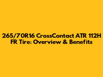 The 265/70R16 CrossContact ATR 112H FR tire is a versatile and capable tire that offers a balance of on-road comfort and off-road performance. Its aggressive tread pattern, durable construction, and enhanced features make it a great choice for drivers who need a tire that can handle a variety of conditions. Remember to always prioritize safety and choose tires that meet your vehicle's requirements and your specific driving needs. Happy driving, guys!