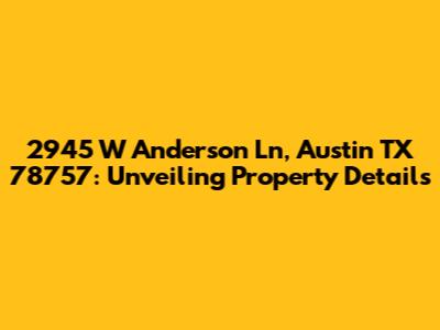 Hey there, property enthusiasts! Let's dive deep into the fascinating world of real estate, specifically focusing on a gem located at 2945 W Anderson Ln, Austin TX 78757. This address holds a story, a potential investment, or maybe even your future home. So, buckle up as we explore the ins and outs of this Austin property, uncovering everything from its location advantages to its market value. Ready to become real estate savvy? Let's go!