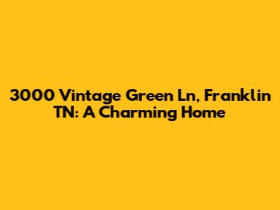 Hey guys! Let's dive into a delightful property located at 3000 Vintage Green Ln, Franklin, TN. This isn't just any address; it's a place where charm meets modern living. Whether you're a prospective buyer, a real estate enthusiast, or simply curious about beautiful homes, stick around as we explore every nook and cranny of this amazing location.