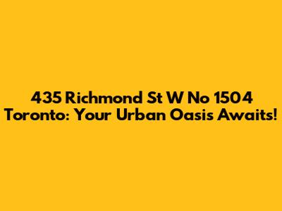 Hey guys! Thinking about diving into the Toronto condo scene? Let’s zoom in on a spot that might just tick all your boxes: 435 Richmond Street West, Unit 1504. This isn't just another condo; it's a lifestyle upgrade smack-dab in the heart of the city. We will delve deep into what makes this address so special, covering everything from its prime location and stunning features to the vibrant neighborhood that surrounds it. Whether you're a first-time homebuyer, an investor, or someone simply looking to experience the best of downtown living, this guide will provide you with all the essential details to make an informed decision.