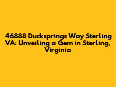 Let's dive deep into everything you need to know about 46888 Ducksprings Way, a notable address located in the heart of Sterling, Virginia. This isn't just about an address; it's about a place that holds stories, potential, and a unique spot in a vibrant community. Whether you're a prospective buyer, a curious neighbor, or simply someone interested in real estate, this comprehensive overview will provide you with valuable insights. We'll explore the property itself, the surrounding neighborhood, and why this location is such a desirable place to be. So, buckle up, guys, as we unpack the details of 46888 Ducksprings Way!