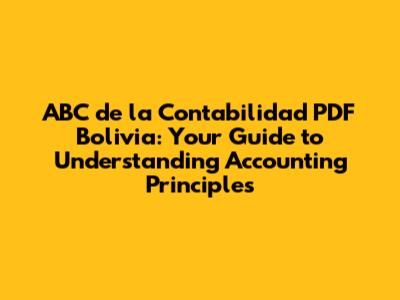 Accounting serves as the backbone of any successful business, providing crucial insights into financial performance and stability. In Bolivia, understanding accounting principles is particularly important due to the country's unique economic landscape and regulatory environment. The ABC de la Contabilidad PDF Bolivia aims to simplify these complexities, offering a practical guide to navigate the local context. By grasping these fundamentals, individuals can make informed decisions, manage resources effectively, and ensure compliance with local laws.