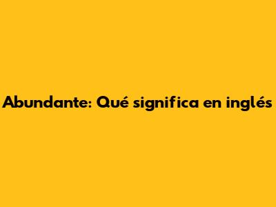 Abundante: Qué Significa En Inglés