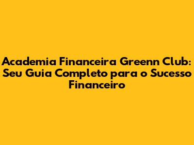 Academia Financeira Greenn Club: Guia Completo Para Finanças