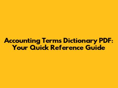 Accounting Terms Dictionary PDF: Your Quick Reference Guide