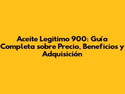 Aceite Legitimo 900: Precio, Beneficios Y Dónde Comprarlo