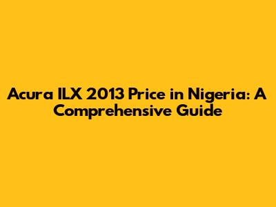 Acura ILX 2013 Price In Nigeria: A Comprehensive Guide