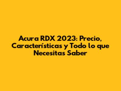 Acura RDX 2023: Precio, Características Y Todo Lo Que Necesitas Saber