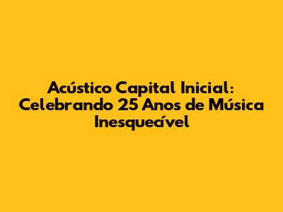 Para celebrar os 25 anos do "Acústico Capital Inicial", a banda tem realizado diversos eventos e shows especiais. Os fãs podem reviver a emoção do álbum, cantando junto com a banda os sucessos que marcaram época. É uma oportunidade única de celebrar a música e de relembrar momentos inesquecíveis.