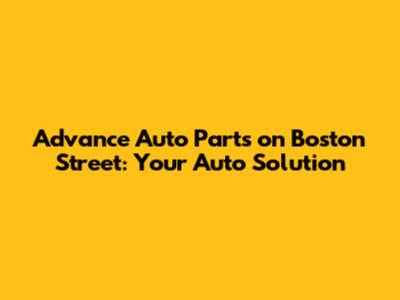Advance Auto Parts On Boston Street: Your Auto Solution