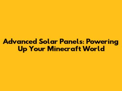 Advanced Solar Panels: Powering Up Your Minecraft World