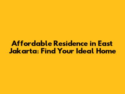 Affordable Residence In East Jakarta: Find Your Ideal Home