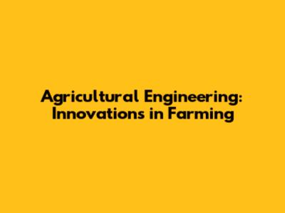 Agricultural Engineering: Innovations In Farming